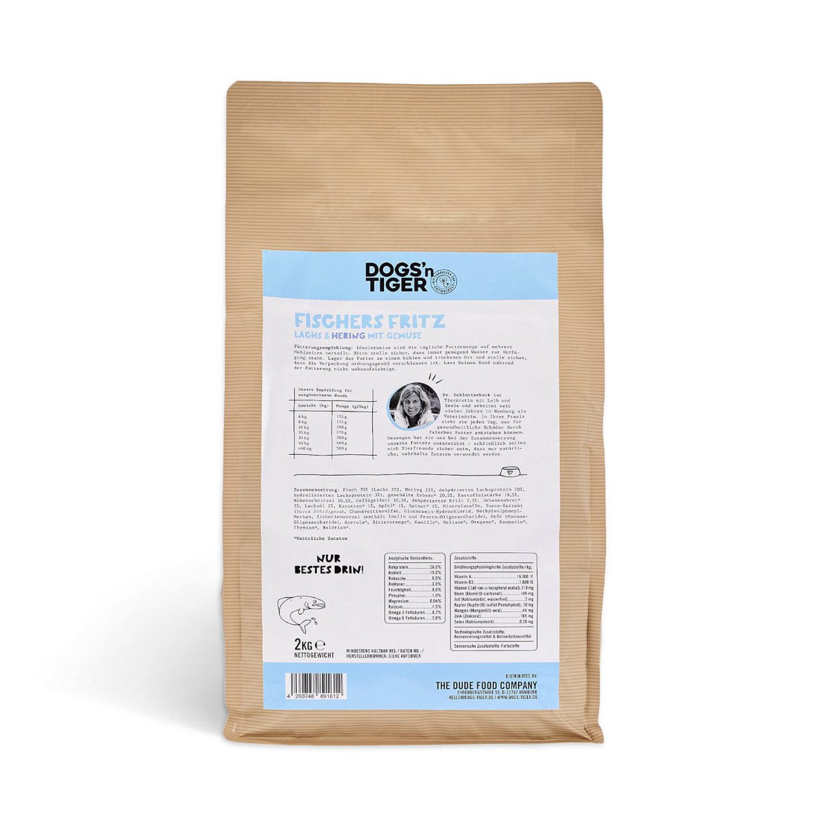 Dogs’n Tiger Fischers Fritz – Premium Trockenfutter für Hunde mit Lachs & Hering, 70 % Fisch, getreidefrei, mit Kräutern & Gemüse